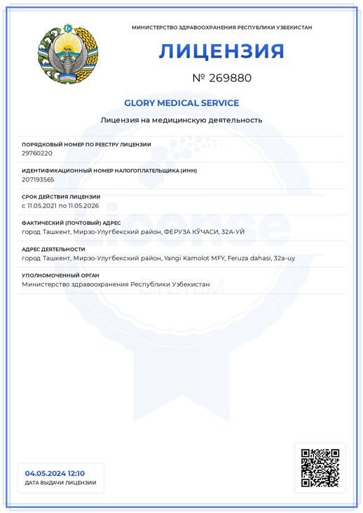 GLORY DETOX klinikasi qaramlikka qarshi kurashda professional yordamga muhtoj bo'lgan har bir kishiga yordam berishga tayyor. Agar siz yoki yaqinlaringiz alkogol yoki narkotik qaramligi muammosiga duch kelsangiz, vaqtni kechiktirmang – hoziroq ko'mak so'rang. Bizga qo'ng'iroq qiling yoki saytimizda ariza qoldiring, va bizning mutaxassisimiz yaqin vaqt ichida siz bilan bog'lanadilar. Sizga yangi, sog'lom hayotga birinchi qadam qo'yishga yordam beramiz!